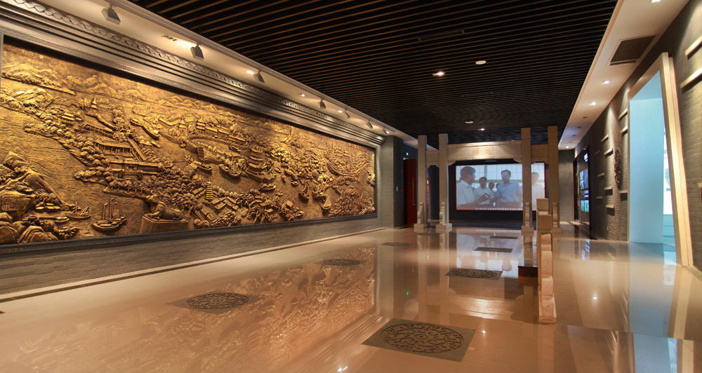 淮安規(guī)劃館是展示淮安城市文化,建設(shè)成就的重要平臺(tái),也是公眾交流的平臺(tái),更是對(duì)淮安了解的直接窗口,為了能夠更好體現(xiàn)這一地域性,同時(shí)避免城市同類(lèi)館中似曾相識(shí)的錯(cuò)覺(jué),在整體風(fēng)格上為尋找一條能夠承載這一使命的元素,我們將以“壯麗東南第一州”作為主線,因水而生、因水而興的淮安城,享“壯麗東南第一州”之美譽(yù),因而這是一部具有是文化的歷史城市。