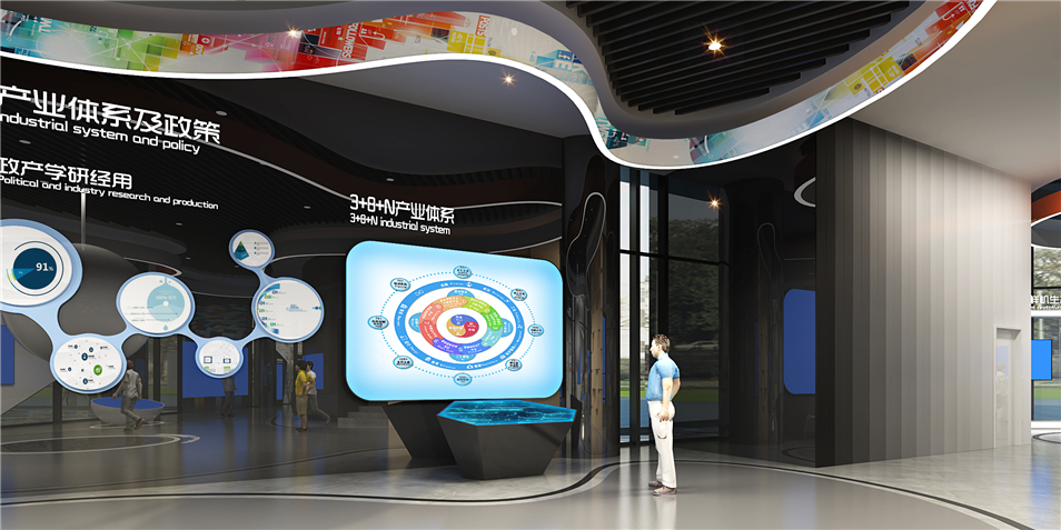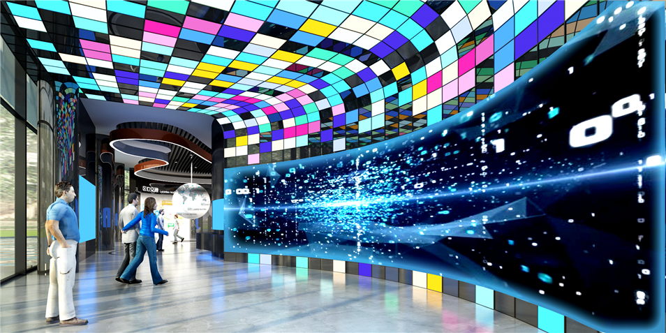 重慶仙桃國際數(shù)據(jù)谷展示體驗中心,展廳主要布局了序廳、仙桃印象、規(guī)劃宏圖、創(chuàng)新平臺、綜合產(chǎn)品體驗區(qū)、幻彩走廊、產(chǎn)業(yè)洽談推進區(qū)、影院共八大主題展區(qū),宣傳數(shù)據(jù)谷規(guī)劃理念和成果,是接待來訪領導、企業(yè)、嘉賓的高科技會客廳。
