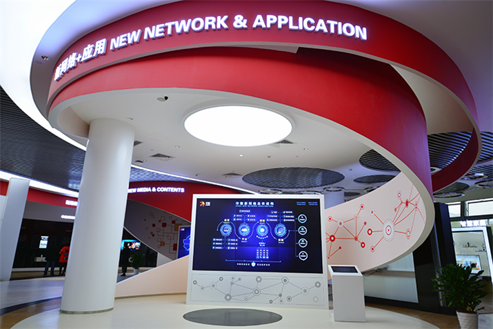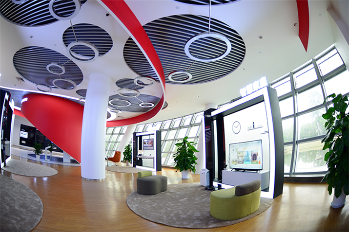 華數(shù)企業(yè)展廳暨國(guó)家廣電總局?jǐn)?shù)字電視開(kāi)放實(shí)驗(yàn)室,位于杭州市華數(shù)白馬湖數(shù)字電視產(chǎn)業(yè)園H 樓一樓, 兼具展覽展示、貴賓接待、創(chuàng)新實(shí)驗(yàn)、培訓(xùn)指導(dǎo)、訪談發(fā)布等功能。展廳主要以多媒體展項(xiàng)為主,其中尤以OLED大型雕塑最為大氣磅礴,由65臺(tái)曲面柔性OLED拼接而成,類(lèi)似雕塑在全球亦屈指可數(shù)。