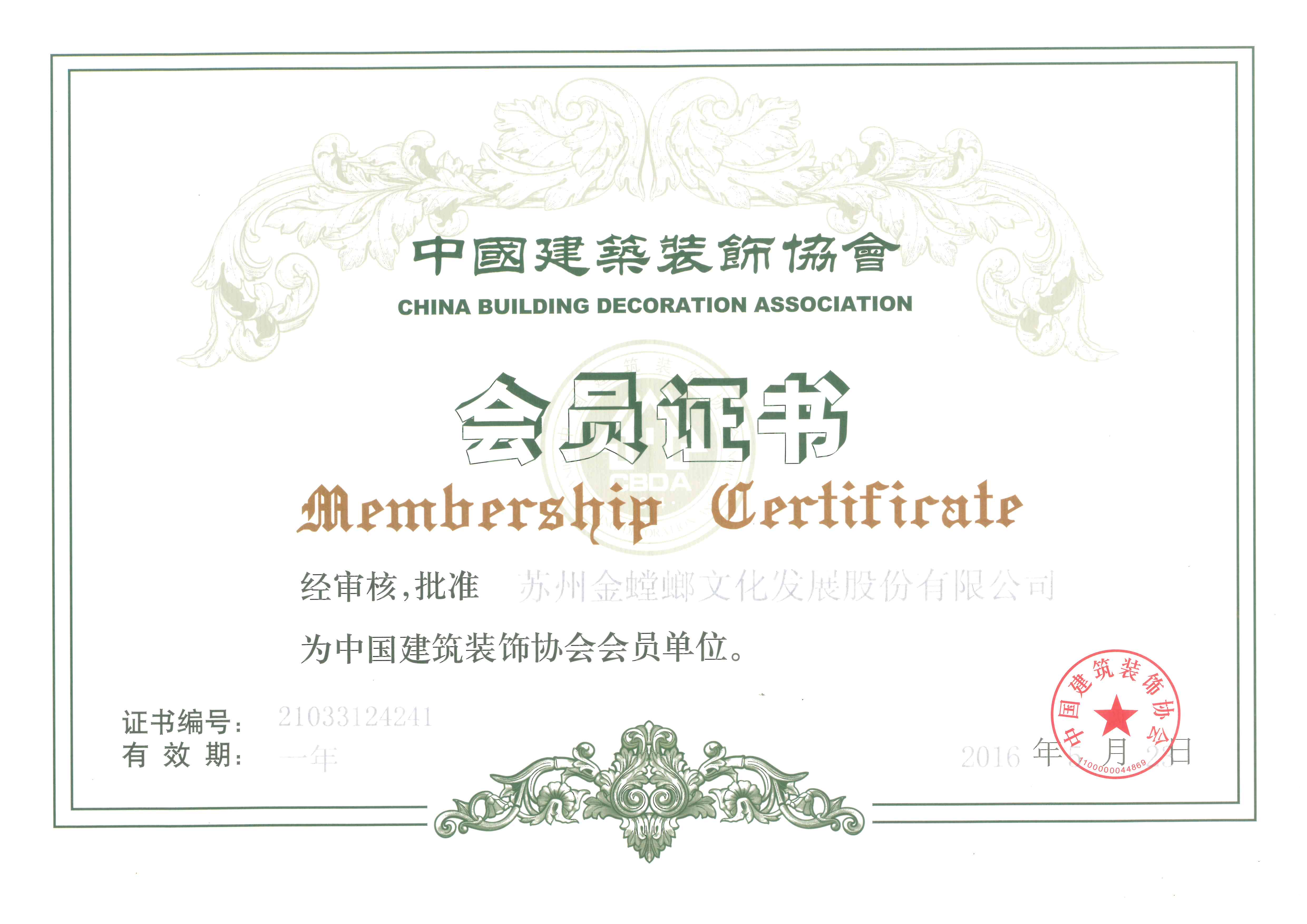 • 中國建筑裝飾協(xié)會會員證書