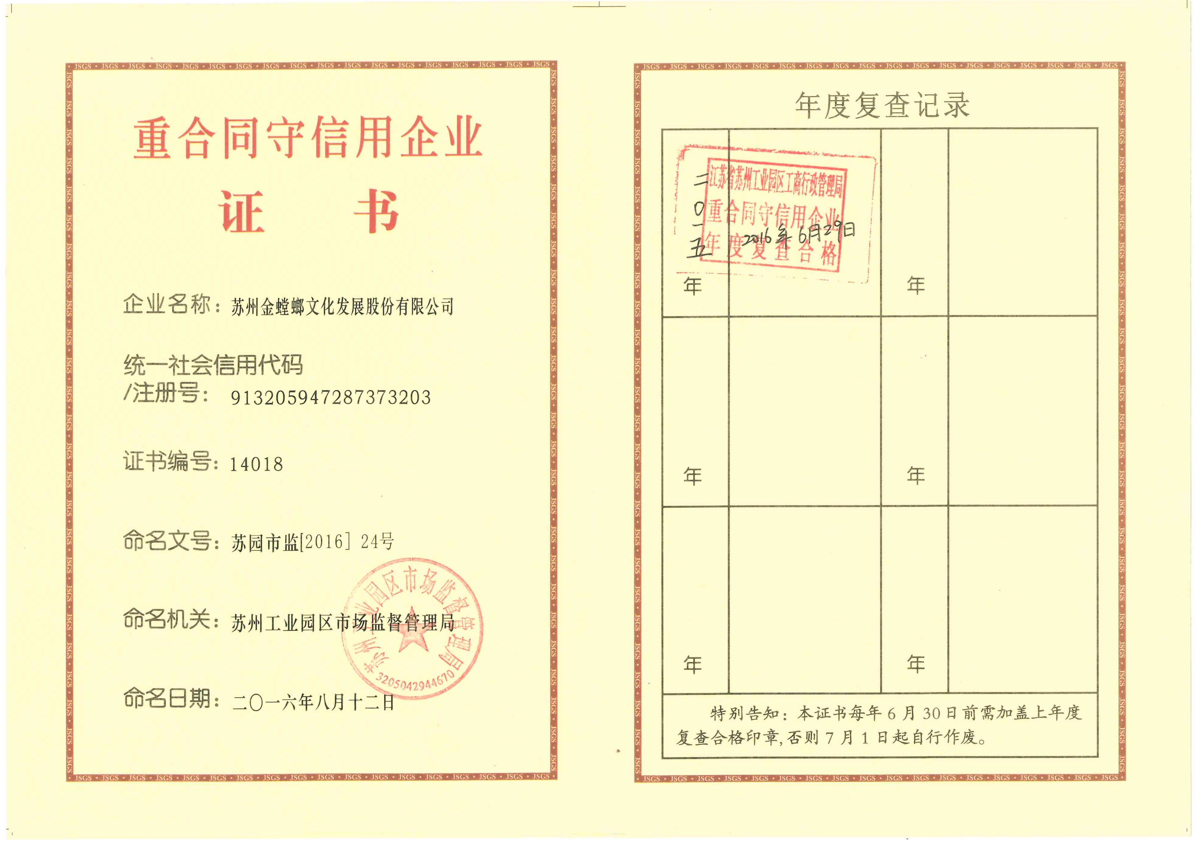 • 重合同守信用企業(yè)證書