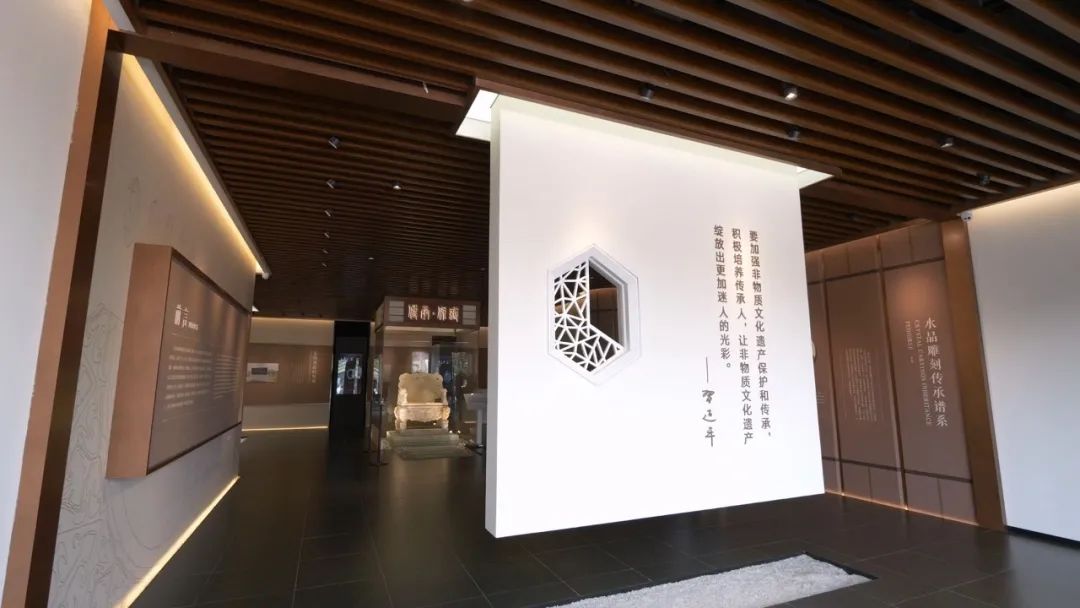 全國唯一一個 以國家級項目水晶雕刻為主題的展覽館 東海水晶雕刻非遺館順利開館! 在這里 全方位體驗東海水晶雕刻的魅力 欣賞東海水晶雕刻藝術(shù)精品 解讀古今中外水晶文化的歷史演變 開啟一場水晶非遺傳承的研學(xué)之旅 (視頻號) 9月20日,東海水晶雕刻非遺館開館儀式暨2023“錫山·東海”優(yōu)秀非遺項目聯(lián)展舉行。國家文旅部原副部長、直屬機(jī)關(guān)黨委書記常克仁,連云港市副市長、東海縣委書記宋波共同為東海水晶雕刻非遺館揭牌。 東海水晶雕刻非遺館坐落于江蘇省連云港市中國水晶文化創(chuàng)意產(chǎn)業(yè)園,建筑面積4500余平方米,內(nèi)有藏品150余件。 △ 建筑外立面的實施中,金螳螂文化采用水晶的截面六邊形為元素,定制化設(shè)計了穿孔鋁板和燈具 2021年,東海水晶雕刻技藝入選國家級非物質(zhì)文化遺產(chǎn)保護(hù)名錄,標(biāo)志著東海縣非遺工作邁向嶄新的一步。 深入挖掘非遺水晶雕刻的文化內(nèi)涵,合理規(guī)劃展示內(nèi)容,金螳螂文化項目團(tuán)隊力求在展館空間內(nèi)全景呈現(xiàn)水晶雕刻作品之精美、雕刻技藝之精湛,展現(xiàn)非遺文化的傳承延續(xù)之脈絡(luò)。 △ 透過花窗,“傳承·保護(hù)”四個字映入眼簾,展現(xiàn)著非遺精神 進(jìn)入序廳,中心位置是展館之最“仿古水晶九龍椅”,之后是東海水晶雕刻傳承人譜系、水晶詩詞多媒體、水晶的形成與郯廬地震遺址等內(nèi)容展示。 晶彩歲月,傳承致遠(yuǎn)。U型投影幕與沙盤燈控相結(jié)合,展示中國古代時期各地出土的水晶器物和玉石雕刻的技藝的傳承。 地面的水晶沙盤和影片聯(lián)動,可以欣賞中國歷代各個時期出土的水晶地域分布,沉浸式感受水晶雕刻技藝及文化源流。 “天工·水晶的匠心綻放”展區(qū),以清光緒十七年李澄淵所繪《玉作圖》為浮雕背景,展示了古人對水晶雕刻經(jīng)驗的長期積累并世代傳承。 中心桌上打造IP卡通人物模型古代水晶雕刻技藝十二圖技法展演,刻畫了雕琢匠人操作的場面并備注操作說明,可以通過VR眼鏡看到動態(tài)的雕琢場景,體現(xiàn)講習(xí)互動、展示體驗等非遺傳承功能。 以多媒體《甲天下的東海水晶》、產(chǎn)業(yè)媒體觸摸柱、東海水晶雕刻發(fā)展之路榮譽(yù)墻、東海水晶雕刻工具沿革、東海水晶雕刻藝術(shù)精品等影視圖文和實物,充分展示水晶雕刻由小到大,從弱漸強(qiáng),由粗變精,形成了多種流派共同發(fā)展的格局,具有時代藝術(shù)價值。 在建設(shè)中更多地采用現(xiàn)代科技技術(shù),根據(jù)展廳的不同部分和不同展出內(nèi)容調(diào)配燈光,設(shè)置U型幕與沙盤燈控結(jié)合的展示形式,打造了IP卡通人物展示模型,電子模擬水晶雕刻操作流程等互動體驗設(shè)施。 在項目實施過程中,金螳螂文化各部門通力配合,保質(zhì)保量地完成項目完工節(jié)點,得到了業(yè)主認(rèn)可并收獲了表揚(yáng)信和獎牌。 東海水晶雕刻非遺館的開館,將進(jìn)一步擴(kuò)大東海水晶雕刻國家級非遺項目的影響力,為東海水晶雕刻項目的傳承弘揚(yáng)和文旅產(chǎn)業(yè)的持續(xù)發(fā)展提供強(qiáng)力支撐。 新聞素材來源:東海文旅、江蘇省非遺保護(hù)協(xié)會