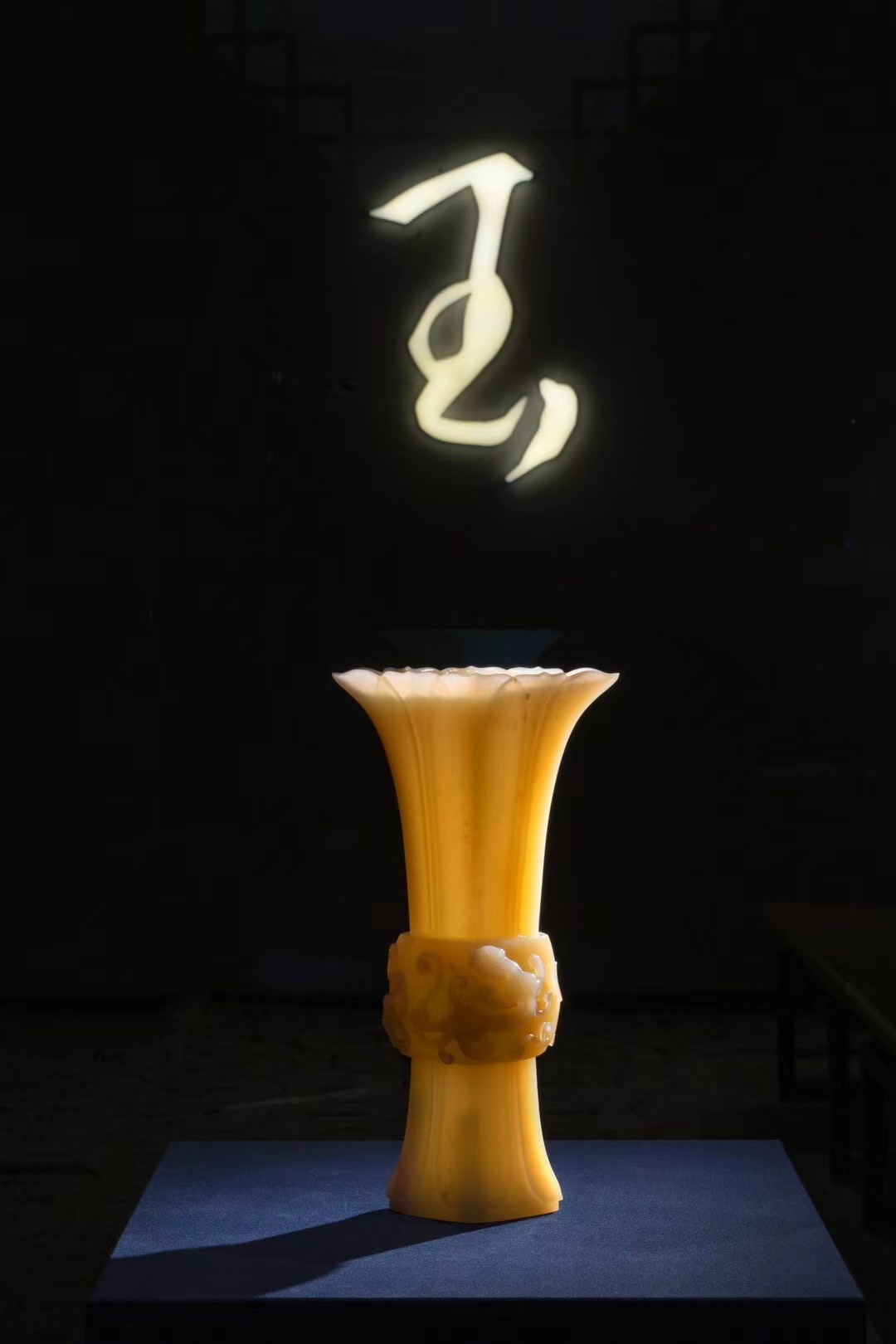 另外,在展廳入口處,放置了一塊重達158斤、未經人工雕琢的新疆和田玉籽料供觀眾觸摸,感受大自然“天地精華”之美。